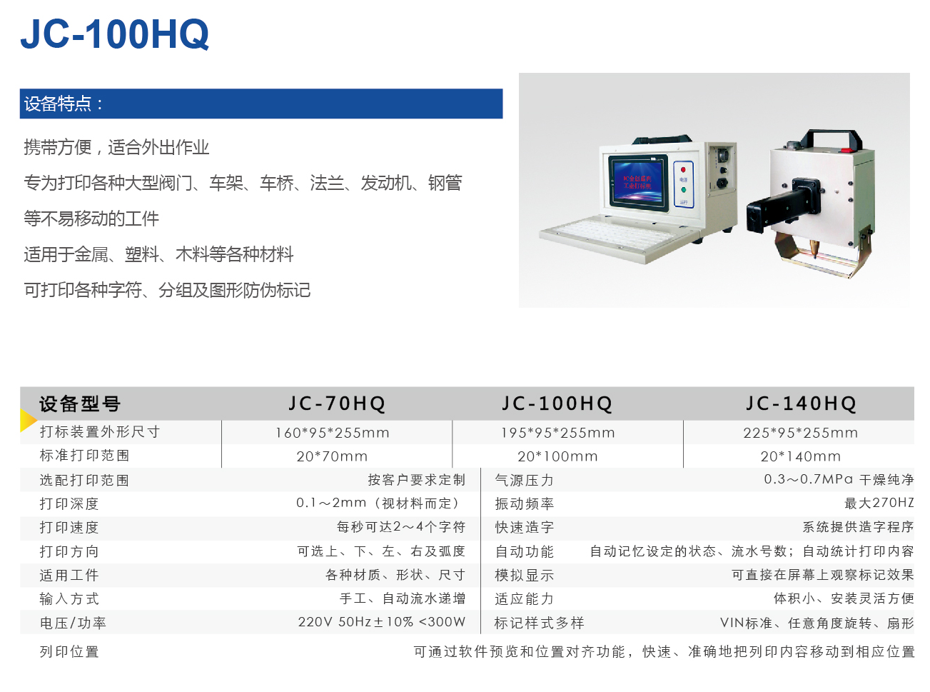 Products > Pneumatic marking machine > Hand held marking machine jc-100hq